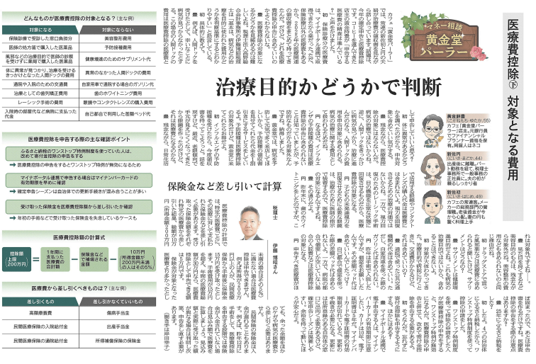 2026年2月18日 日本経済新聞 夕刊6面 「ニュースぷらす マネー相談 黄金堂パーラー」~医療費控除㊦対象となる費用~の記事で、弊事務所のパートナー 税理士 伊藤博昭が監修・コメントを担当しました。医療費控除の対象範囲(治療目的の判断基準など)について解説・コメントしています。確定申告シーズンを迎え、多くの方が気になるテーマです。ぜひご一読ください。