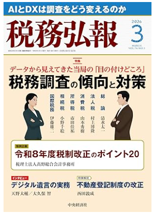 税務弘報2026年3月号 恒例企画『令和8年度税制改正のポイント20』を執筆しました